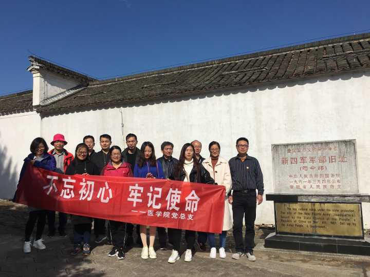 为开展爱国主义和革命传统教育,弘扬和培育民族精神,根据学校党委的统一部署,医学院党总支全体党员于11月10日-11日赴皖南开展了“不忘初心、牢记使命”的革命传统现场教育活动。