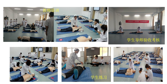 多元化导师架构,梯队式推广普及方式。本次急救知识推广普及导师队伍由医学院专业教师团队、医院临床一线专家和学生小导师组成。医学院近年来通过以赛促教、以赛促学,加强了教师专业团队技术水平,完成了梯队培养第一梯队的培训导师建设,依托专业社团“天使护理协会”近年来关于梯队式培养成功经验,培养了大量社团骨干,极大丰富了第二和第三梯队的培训导师队伍。通过培训、筛选优质培训师资和梯队顶层优秀学生,搭建了包含20余名专业教师和临床一线专家队伍,40余名顶层优秀学生小导师队伍。