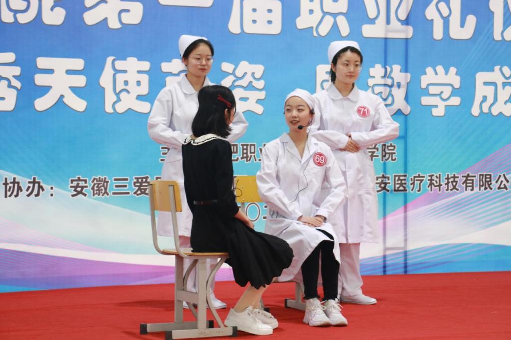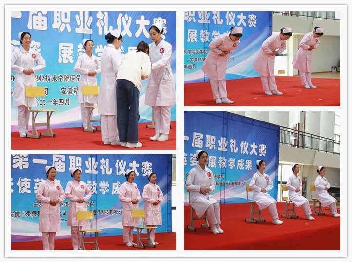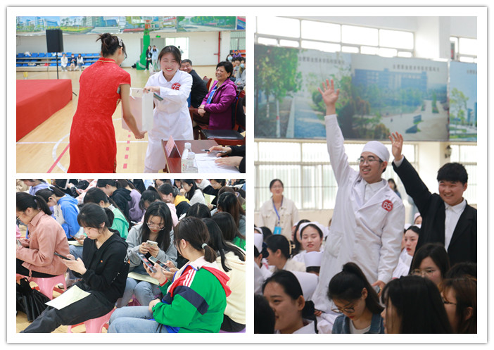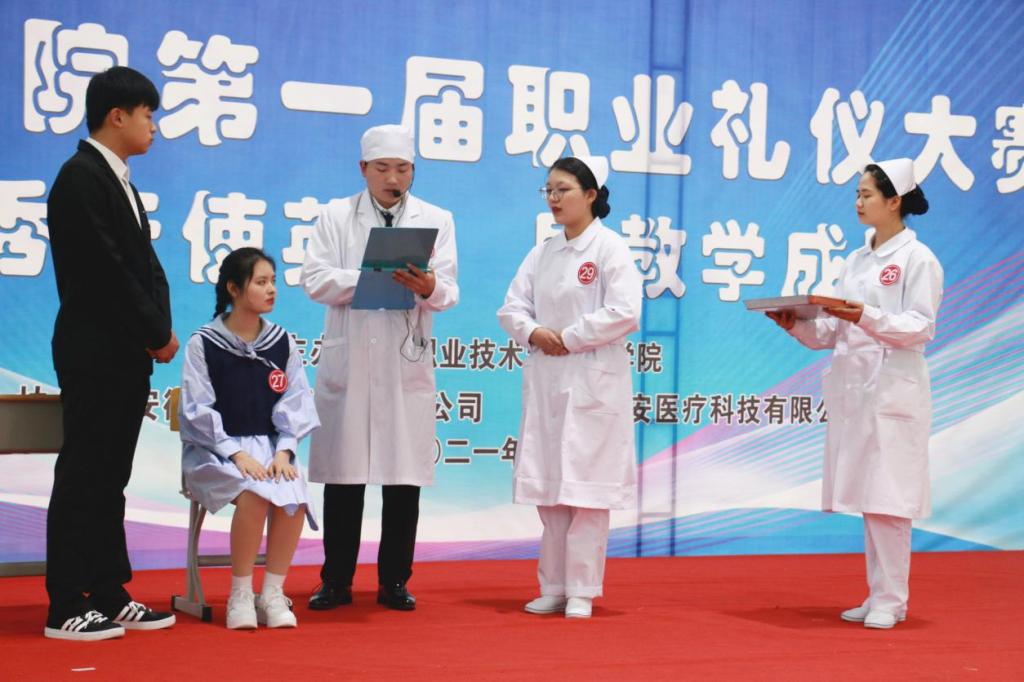 为了落实“五育并举”,推进“三全育人”工作,增强医学院学生专业素养和就业自信,展现学子的职业精神风貌和礼仪风采,4月21日下午,在学校体育馆二楼举办医学院职业礼仪大赛,安徽医科大学附属巢湖医院副院长、巢湖市护理学会理事长孙会芹,申博太阳城校党委委员、鼓山校区管委会主任周泽山,马克思主义学院院长靳玉琼、医学院党政班子和相关专业教师应邀出席了本次比赛,并担任评委老师。