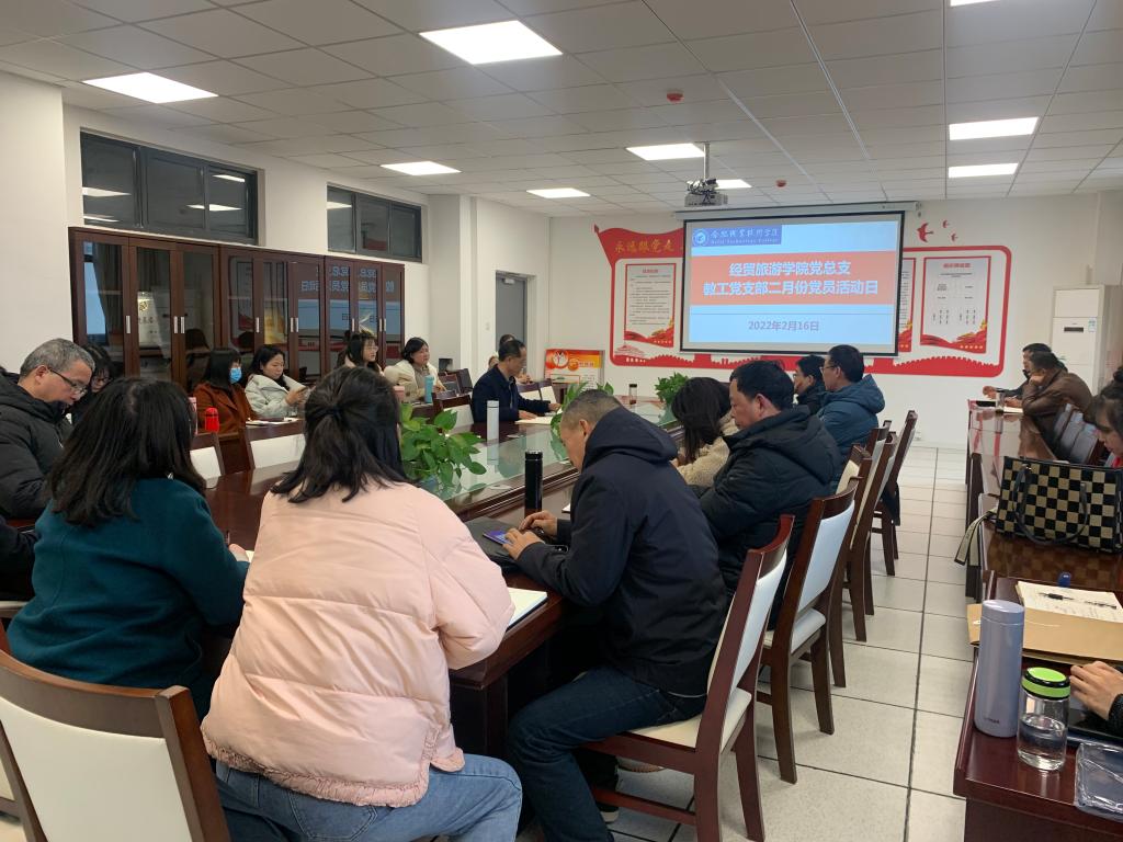2月16日下午,经贸旅游学院党总支分支部在学院党员活动室和学管会议室召开2月份主题党员活动日学习活动。教工支部会议由支部书记刘圣春主持,学生支部会议由支部书记王明明主持。