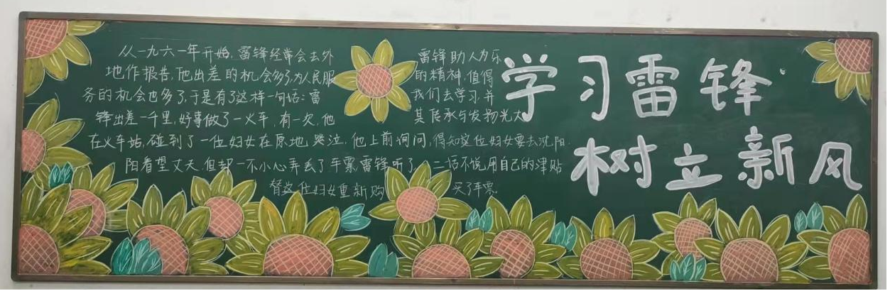 为进一步引导学生用实际行动诠释雷锋精神,点燃同学们的思想道德建设热情,生物工程学院团总支开展“雷锋月”主题黑板报活动,弘扬雷锋事迹,传承新时代雷锋精神。