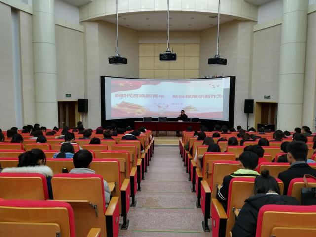 元月11日下午课外活动时间,根据学校安排,学生(保卫)处党支部书记高恒平为申博“学习党的十九大精神学生骨干培训班”240位学员进行党课教学。