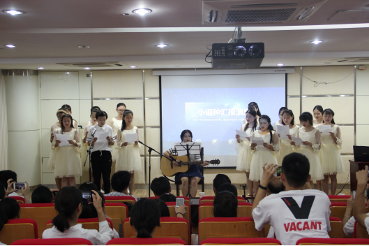 7月2日下午,来自申博本学期开设的公共选修课《德语》《韩语》《日语》的四个班级在图书馆一楼第二学术报告厅成功地举办了一场文艺汇报演出。本次演出由教务处、基础教育学院主办,旨在庆祝小语种选修班通过一个学期的努力顺利结班,为营造申博国际化合作办学学习气氛做出了相应的贡献。