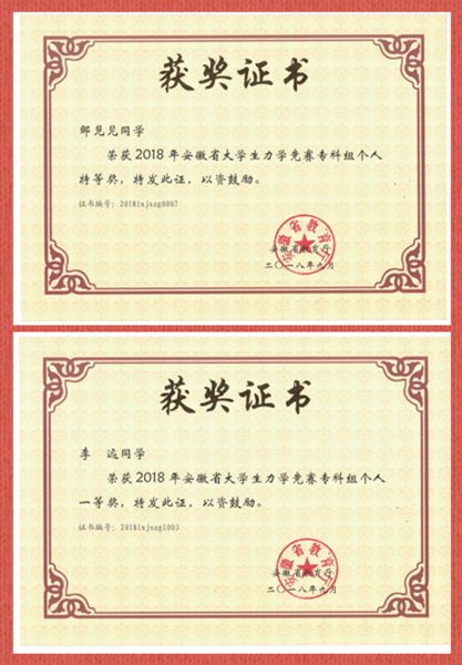 日前,2018年安徽省大学生力学竞赛总结会议在合肥工业大学屯溪路校区召开。申博建筑工程学院学子共获得6个奖次:2015级工程造价2班邹见见同学获得专科组个人特等奖,2016级建筑工程技术2班李远同学获得专科组个人一等奖,另有4名同学获得专科组个人三等奖。