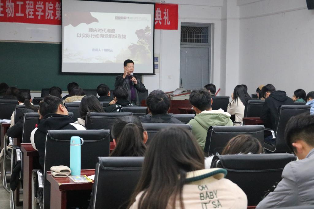 为全面学习贯彻习近平新时代中国特色社会主义思想及全国教育大会精神,切实提高入党积极分子的政治理论素质,12月6日下午,生物工程学院于生化楼305室隆重召开第22期业余党校开班典礼。校党委副书记胡其云,校组织部部长周泽山应邀出席,生物工程学院党总支委员及全体师生学员参加了此次开班典礼。