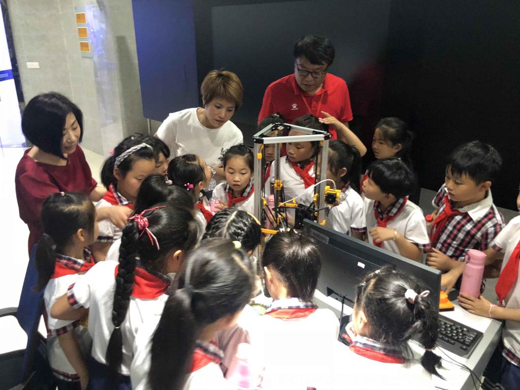 申博志愿者们首先带领城北小学的师生们走进3D打印体验馆,3D体验馆的老师耐心给小学生们讲解了3D打印的相关知识,让小学生们大开眼界。在桌面级3D打印机前,小学生们仔细观察机器的工作原理,各种材料被打印成形状各异的物品,小学生们发出阵阵惊叹声,感受到了3D打印的魅力。