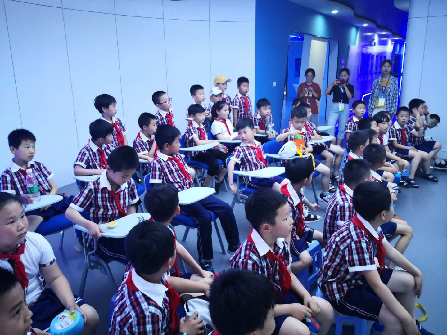 6月5日上午,城北小学二年级(2)班共61名同学,在校长李业宽和两名教师的带领下,来到申博参加“大手拉小手 科技耀童心”活动。