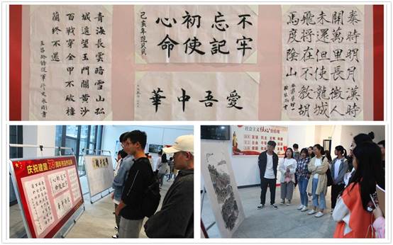 本次书画展系列活动以“告白祖国”为主题,一方面以书画传情,向新中国成立70周年献礼,表达了广大师生对党和祖国无尽的热爱和诚挚的祝福。另一方面有利于营造积极健康的校园文化氛围,引导青年学子传承优秀中华传统文化,坚定文化自信!(供稿:经贸旅游学院 编辑:朱鹏飞)