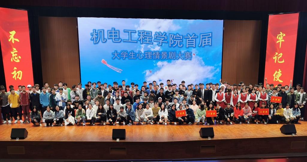 为进一步加强大学生心理健康教育,引导学生关注心理健康,弘扬心理文化,提高大学生心理素质,更好地展现当代大学生积极进取的精神面貌,机电工程学院于11月8日下午在汇心湖校区大学生活动中心举办了首届大学生心理情景剧大赛。机电工程学院党总支副书记(主持工作)王克勇及该院专职辅导员担任本次大赛评委,400余名师生观看了大赛。