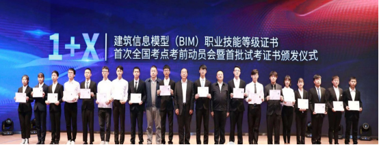 11月6日,申博建筑工程学院副院长魏永恒带队参加在河北廊坊召开的“1+X”建筑信息模型BIM职业技能等级证书首次全国考点考前动员会暨首批试考证书颁发仪式,来自住房和城乡建设部、全国住房和城乡建设职业教育教学指导委员会、中国建设教育协会的相关负责人和272所院校的550余名教师参加了会议。会上,为来自全国18所职业院校BIM证书上00001的学生颁发“1+X”建筑信息模型(BIM)职业技能等级证书,这是国家职业教育改革“1+X”证书制度试点工作开展以来全国发放的首批证书。