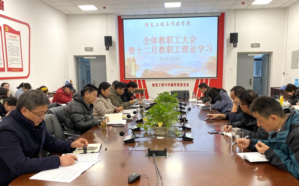 时近岁末,为进一步加强理论学习、做好总结和规划,12月25日下午,信息工程与传媒学院在信息楼102会议室召开了12月全体教职工大会暨政治理论学习会议,会议由该院党总支书记李红雨主持。
