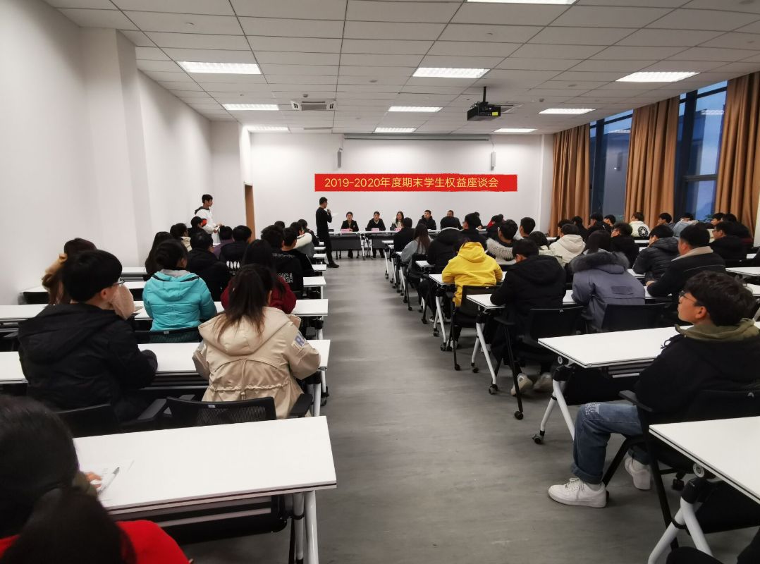 1月6日下午,校学生会权益部主办学生权益座谈会在汇心湖校区大学生活动中心团委会仪室召开。校团委老师董如恺、各学院学生代表和总务处、食堂餐饮、校物业等相关负责人出席本次座谈会。