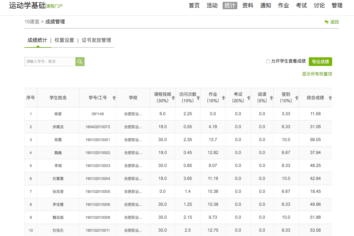 将线上教学学生的综合得分(含访问次数、阅读、签到、作业、课中活动等)纳入本门课程的总体评价体系,并且教学平台的功能将全程贯穿线下教学过程,学期结束时线上考核分数将与笔试分数共同构成课程总分。过程性评价更有利于教师掌控学情,学生发现问题。