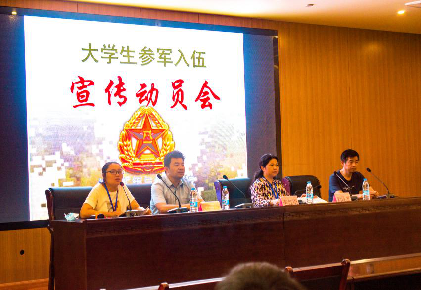 会上,燕倩倩老师解读了安徽省合肥市大学生入伍优惠政策,鼓励同学们参军入伍,报效祖国。
