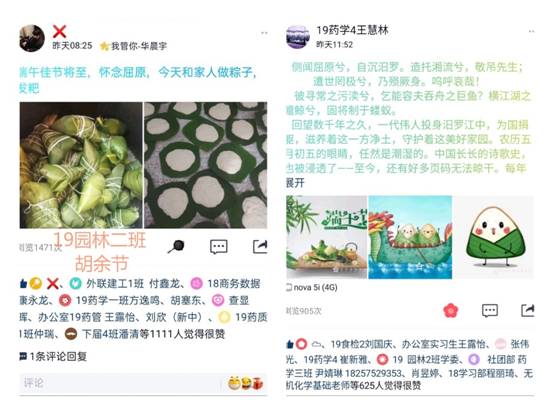 开展“疫情端午传承文明”动态集赞活动。五月端阳,粽叶飘香。为继承并传扬端午优秀传统文化,增添端午节日的浓厚气息,生物工程学院团总支鼓励并支持该院学生通过网络平台发布端午节日动态并参与集赞活动,此举便于师生好友线上欢度端午,共享节日喜悦之情。