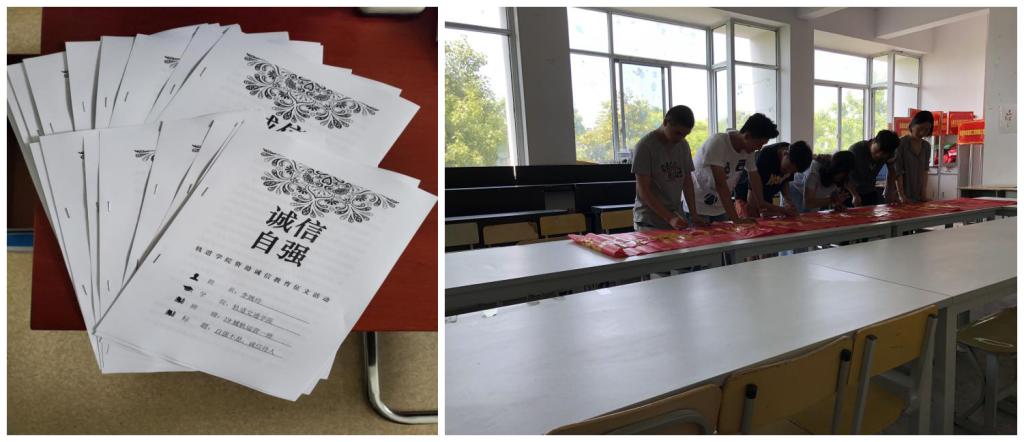 各二级学院结合实际开展了丰富多彩的特色活动,如资助诚信教育征文活动、诚信宣誓活动、诚信签名活动、短视频展览和资助知识竞赛等。各类活动获得了全校师生的全力支持和广泛参与,在校园里形成了浓厚的资助诚信宣传氛围。