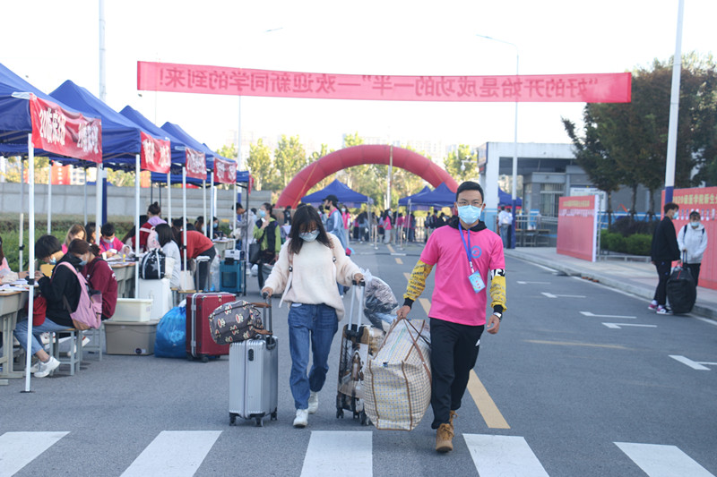 线上线下结合,做好服务工作。医学院线上通过创建新生班级QQ群,通知学生相关报到事宜,同时进行防诈骗安全教育;由于家长不能入校,医学院组织学生会志愿者帮助新生搬运行李,通过调度学校设置的爱心专车,帮助新生拖运行李,医学院师生的贴心服务赢得了新生及家长们的一致好评。