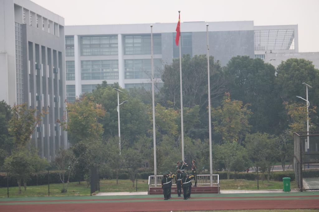 迎着朝阳,国旗护卫队队员们迈着矫健的步伐护送鲜艳的五星红旗缓缓走来。当雄伟庄严的国歌奏响,五星红旗冉冉升起,迎风飘扬,全体师生心潮澎湃向国旗行注目礼,全体齐唱国歌,内心的自信豪迈之情难以言表。