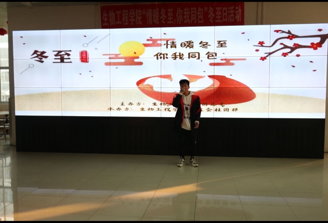 今年12月21日是我国的传统节日——冬至。为了让同学们感受到节日氛围,增进同学们之间的感情,又能感受到自己动手包饺子的乐趣,生物工程学院在冬至日当天组织了一次别开生面的包饺子活动。此次活动的主题是:“情暖冬至,你我同包”。