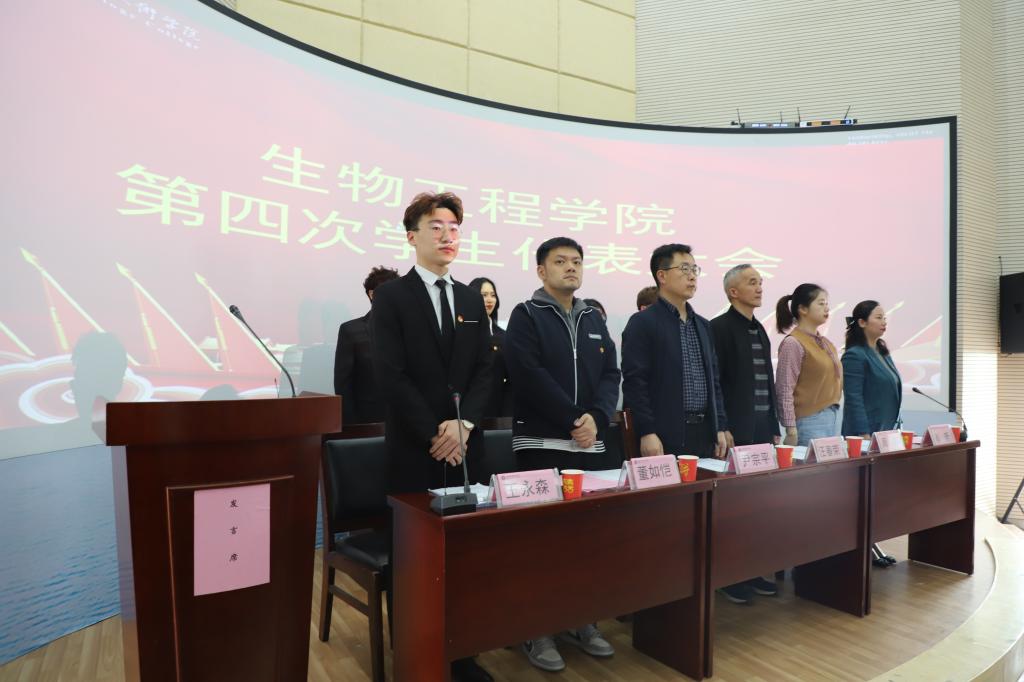 尹宗平在大会上讲话,对学生代表提出三点希望:遵守承诺,不负众望;热心服务,积极工作;以身作则,做好榜样。要提高能力,奋起直追,不断完善自我,加强自身修养,坚持到底不放弃。最后,生物工程学院党总支副书记周婷致闭幕词,大会在庄严的团歌声中胜利闭幕。