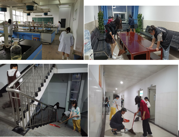 开展班级教育课。五一期间,医学院利用假期时间,开展家务劳动实践教育活动,组织同学利用五一假期进行家务劳动实践,学生在家帮助父母做家务,做一些力所能及的事,感谢父母多年的养育之恩,培养学生一颗感恩的心。留校同学对教学楼、实训室等公共区域进行卫生打扫,对校园进行垃圾清理、环境美化。
