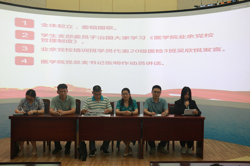 为加强学生党性教育,提高对党史和党的先进性的认识,铸魂补钙,为党组织培养一支“听党话、跟党走”的高素质后备军队伍,6月22日,医学院在图书馆二楼告厅举办第四期业余党校开班典礼。医学院学生支部全体党员和224名业余党校学员参加了本次开班典礼。典礼由医学院学生支部书记刘惠同志主持。