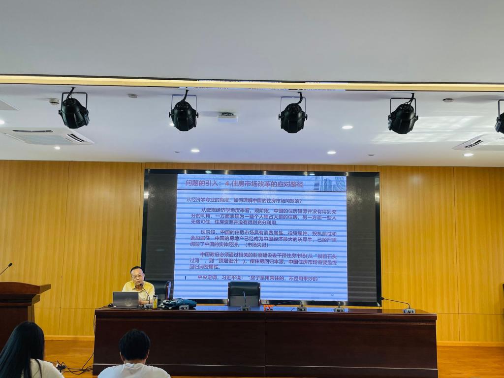 为向师生宣传介绍中国住房市场的发展历程与未来趋势。6月23日下午,经贸旅游学院在汇心湖校区图书馆一楼学术报告厅精心组织了一场题为《住房市场要素解析》专题学术报告会,报告会由鲍勇教授主讲。金融教研室全体教师、19级、20级互联网金融专业部分学生听取了报告。报告会由经贸旅游学院金融教研室主任任向英副教授主持。
