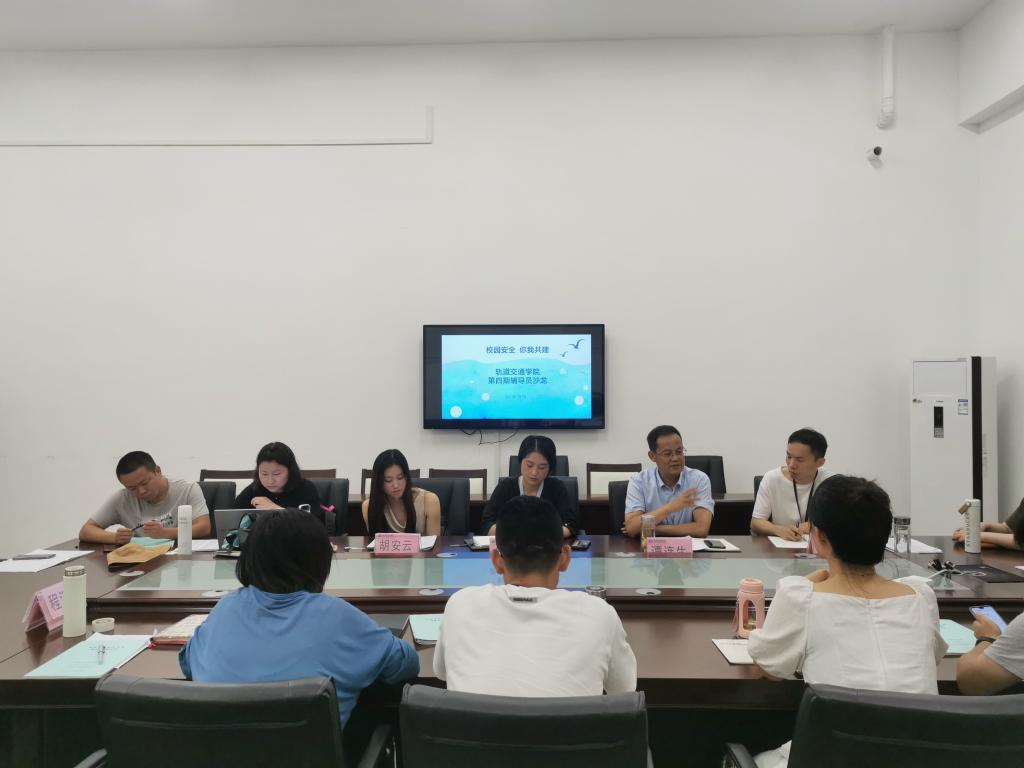 为切实加强辅导员队伍建设,不断提升辅导员素质能力,7月7日上午,轨道交通学院在轨道楼210举办第四期辅导员沙龙。本次沙龙以“校园安全 你我共建”为主题,邀请校保卫处处长谭连生做主题分享,学院全体辅导员参加。沙龙由党总支书记佘海月主持。