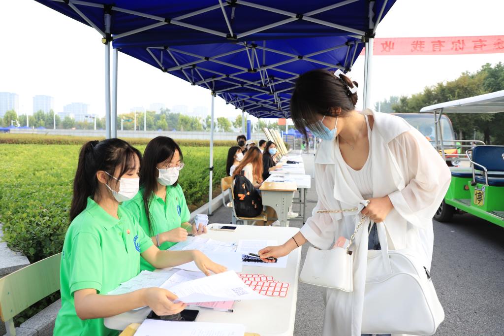 9月9日上午,生物工程学院2021级新生报到,学院迎新工作正式启动。生物工程学院党总支书记汪春荣、院长刘修树、副院长方丽波、党总支副书记周婷、21级全体新生辅导员在校北门东侧,迎接新生的到来。一线教职员工严格把控返校通道的第一道关卡,引导新生在入口处有序测量体温,核验健康码、新冠疫苗接种记录、14天行程卡以及48小时内核酸检测报告。