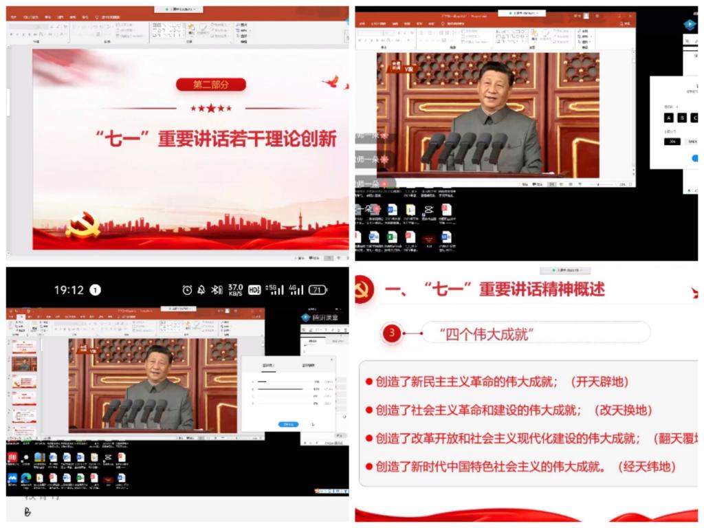 本次宣讲主题为“赓续红色血脉 书写青春华章”。内容主要分为四大板块,一是通过对习近平总书记“七一”重要讲话精神的概述,彰显了中国共产党不忘初心牢记使命的伟大爱国精神。二是通过对习近平总书记“七一”重要讲话若干理论创新的解读,歌颂了中国共产党的百年功绩。三是激励学生们弘扬爱国传统,书写青春华章,通过增强志气、骨气、底气,不负时代,不负韶华,不负党和人民的殷切希望,以不懈的奋斗,擦亮青春底色。四是通过对合职院物质文化、精神文化、行为文化、校园文化的详细介绍,引导学生们传承合职文化,凝聚合职力量。老师们用丰富详实的内容,通过不同的宣讲风格,给学生上演了一堂引领思想、精彩生动,让学生难以忘怀的“开学第一课”。新生们积极参与线上课堂的互动和讨论。