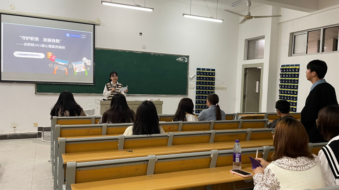 10月14日晚上,生物工程学院在教学楼B203开展2021级心理委员培训会,心理老师汪纬静主持开展此次培训活动。