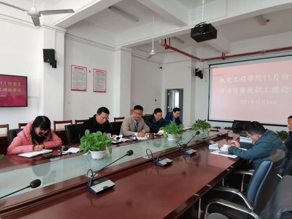 为深入学习贯彻党的十九届六中全会精神,11月24日,机电工程学院在机电楼二楼会议室召开全体教职工大会暨十一月份党员理论学习会议。校党委委员、办公室主任王海及全体教师职工参加会议,会议由该院党总支副书记(主持工作)王克勇主持。