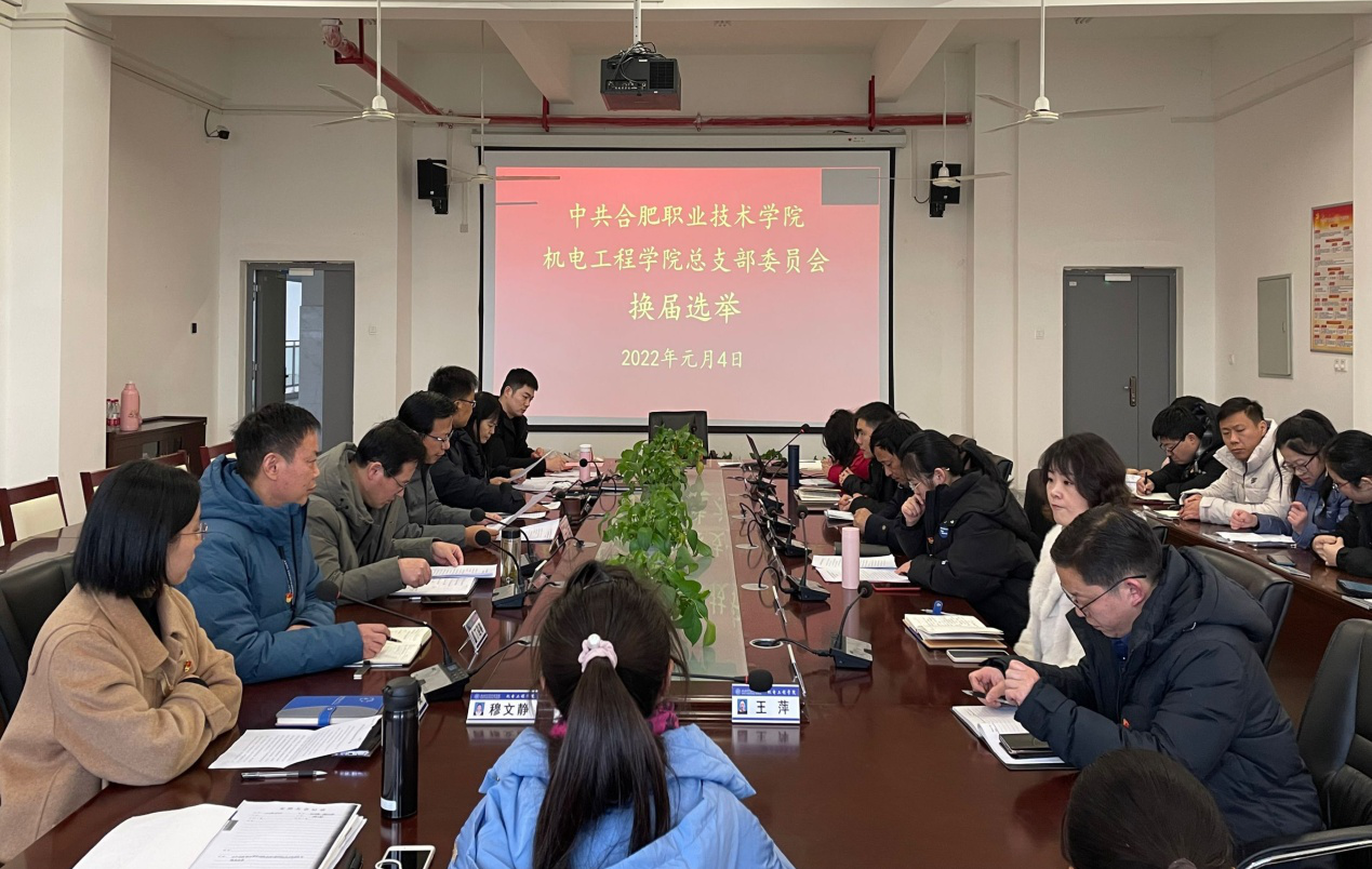 根据《关于同意中共申博太阳城机电工程学院总支部委员会及下辖党支部换届选举和新一届委员会委员候选人、党支部书记候选人人选的批复》的要求,机电工程学院党总支于2022年1月4日下午在机电楼二楼会议室召开党总支换届选举大会,校党委委员、办公室主任王海和学院全体党员出席大会,会议由学院副院长(主持工作)胡木林主持。