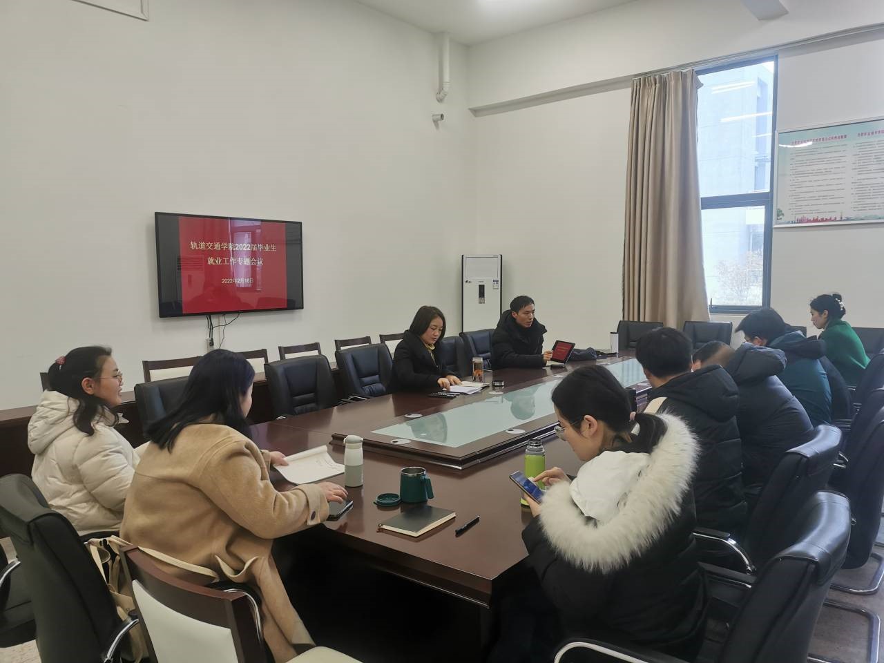 2月16日下午,轨道交通学院在轨道楼210会议室召开2022届毕业班生就业工作专题会议。会议由党总支书记佘海月主持,毕业班全体辅导员参加会议。