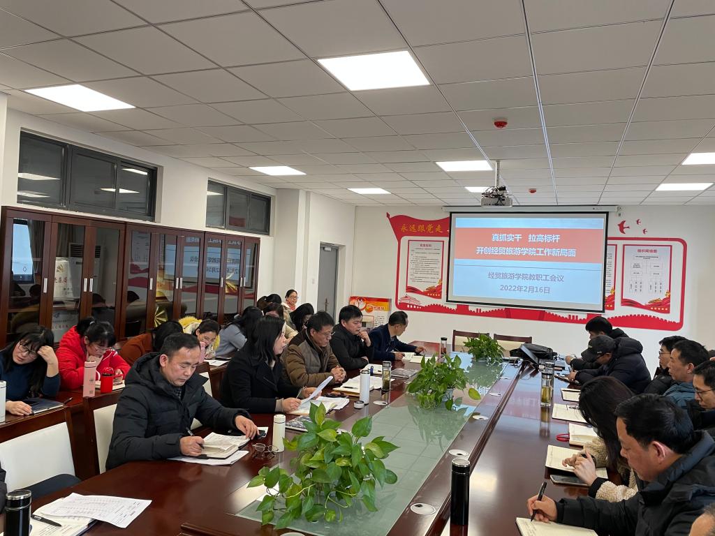 2月16日下午,经贸旅游学院召开以“真抓实干,拉高标杆,开创经贸旅游学院工作新局面”为主题的全体教职工会议。会议由尹仕果主持。
