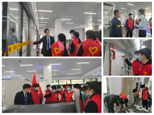 来访师生参观了申博轨道交通学院车辆、运营、机电等实训室和智能车训练室。学生们坐上了列车驾驶座椅,看清了一些地铁设备的内部构造,亲自体验了手摇道岔。大学生解说团的志愿者们对城市轨道交通的运行情况、地铁站内的消防和监控系统的介绍让他们对每日乘坐的城轨地铁有了全新的认识。随后,师生一起参观了学校的汇德广场,认真学习了广场中象征着工匠精神的文化柱。
