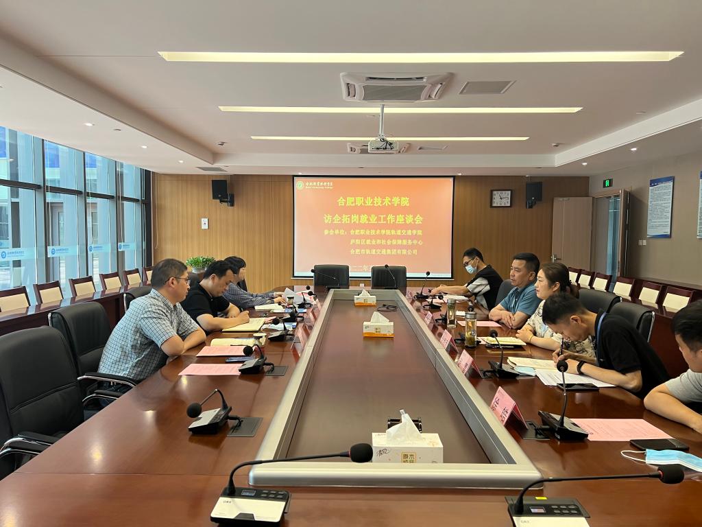 为进一步助力毕业生高质量就业,落实学校“访企拓岗促就业”专项行动,轨道交通学院于5月24日上午邀请了合肥市庐阳区人社局就业和社会保障服务中心主任陈辛、合肥轨道交通集团有限公司党委办公室(人力资源部)刘宏主任和人力资源部副部长王昕参加 “访企拓岗促就业”工作座谈会。校党委副书记胡其云出席会议,会议由轨道交通学院党总支书记佘海月主持。