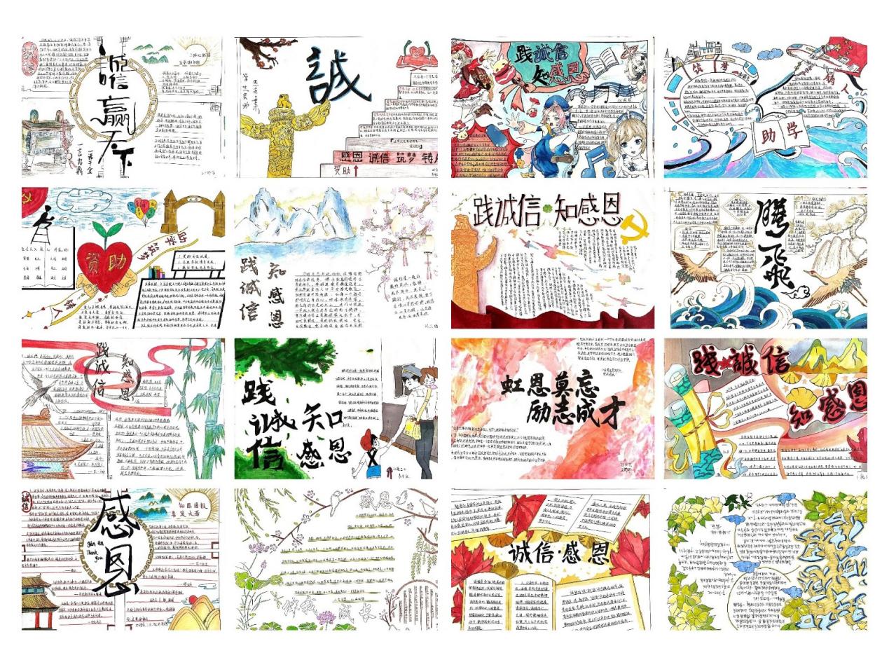 活动分为两部分内容,活动一以“践诚信 知感恩”为主题征集资助宣传手抄报,通过前期的宣传和准备,该院在校班级积极参与,共收到90余幅作品。