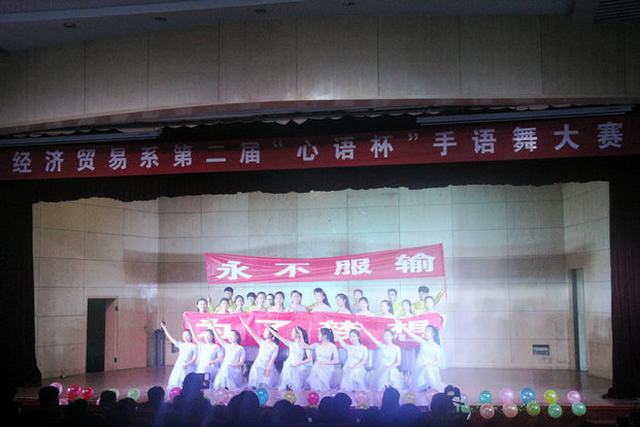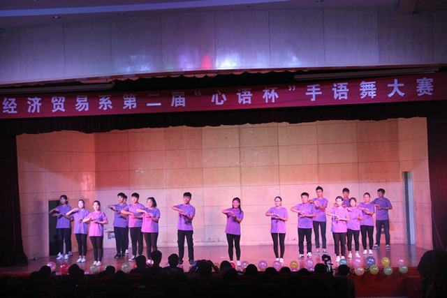 通过参与比赛,从组队、选曲、服装到精心排练,16级学子们在过程中收获了友谊和荣誉,感受到集体和团队的凝聚力和战斗力,更重要的是同学们用手语在无声的世界中感受爱,拥抱爱,奉献爱,传递爱!(供稿:经贸系 编辑:朱鹏飞)