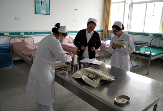 医学分院2017届护理、助产、康复三个专业1100余名学生即将于5月上旬全面进入临床进行毕业实习。在院实训中心的协助下,3月12、13日两天,医学分院对学生进行岗前技能考核。院领导及实训中心负责人亲临检查指导分院工作。