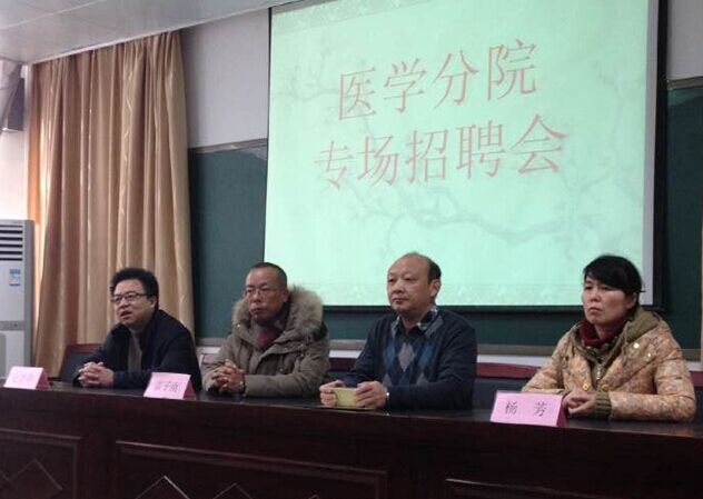 1月29日,浙江武义县人事局、卫生局及武义县妇幼保健院等单位相关负责人一行7人冒着大雪来到申博,进行2015届助产专业毕业生专场招聘,提供4个编制岗位和若干个协议护士岗位。此次招聘会由医学分院承办,经过前期半个月的宣传与组织,30日上午20位学生来到招聘现场。