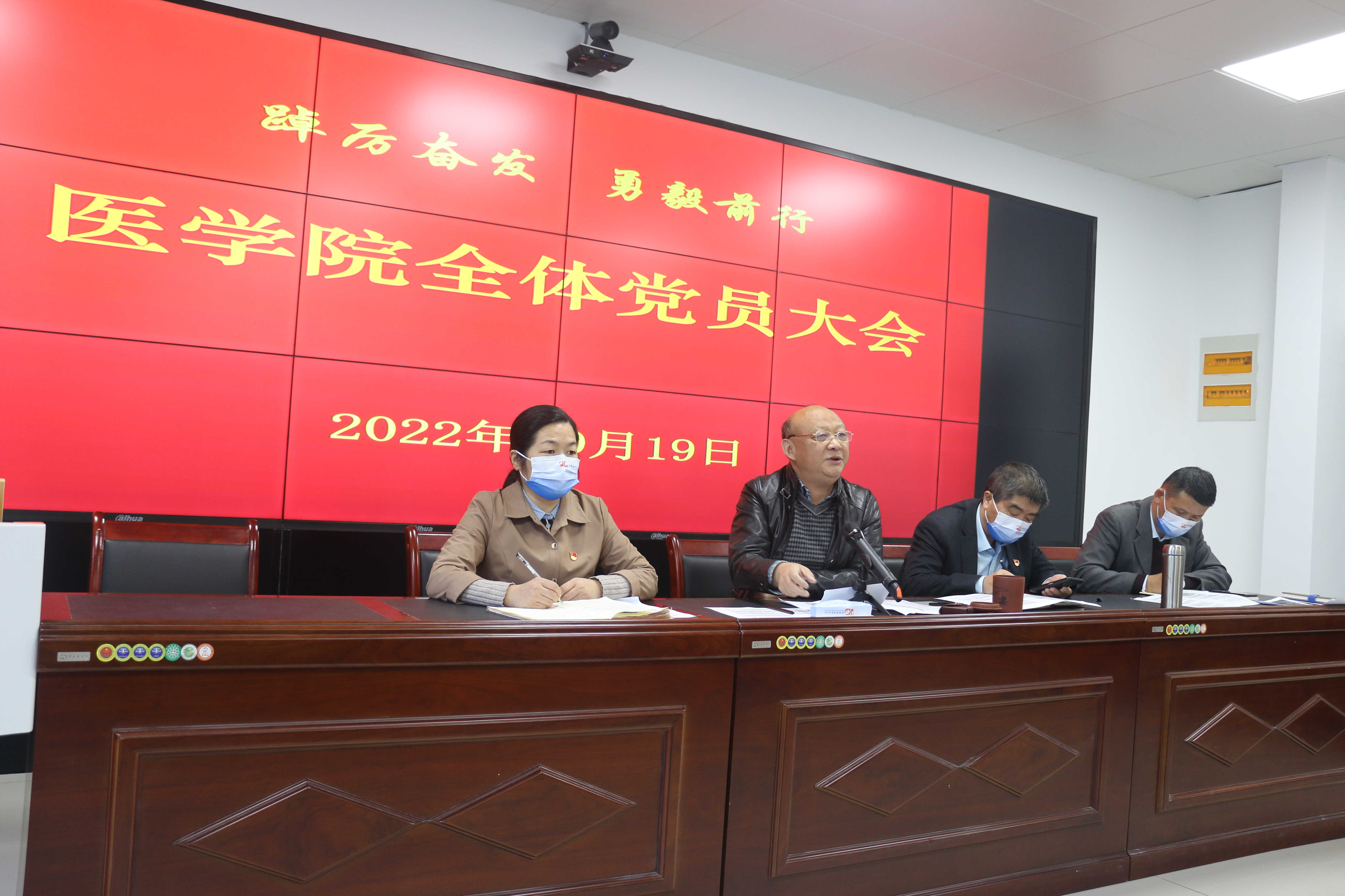 10月19日下午,医学院在医学楼二楼智慧会议室召开全体党员理论学习大会,传达学习党的二十大精神。校党委委员、副校长周晓隆出席会议,医学院全体党员参加会议。会议由医学院党总支副书记(主持工作)孙美兰主持。