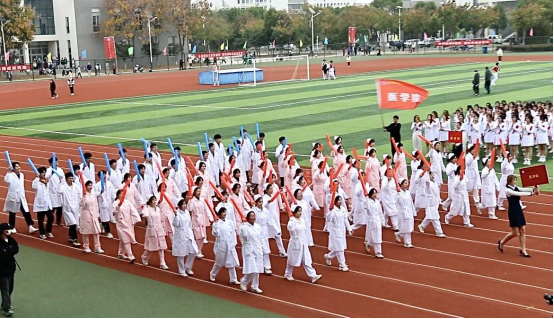医学院的学子们用最饱满的热情点燃运动之火,用最昂扬的姿态谱写青春之歌。在激昂的乐声中,同学们英姿勃发、步伐整齐。伴随着雄壮的国歌,五星红旗冉冉升起,运动员们气宇轩昂、精神抖擞,诠释着医学院学子自强不息、勇往直前的精神风貌。