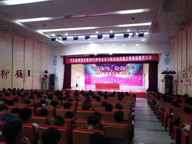 5月4日下午,汽车应用技术系在大学生活动中心举行2017年学生实习就业动员暨文明离校教育大会,汽车系党总支书记汪春荣、系主任程师苏出席,2015级专兼职辅导员及全体学生参加。大会由汽车系党总支书记汪春荣主持。