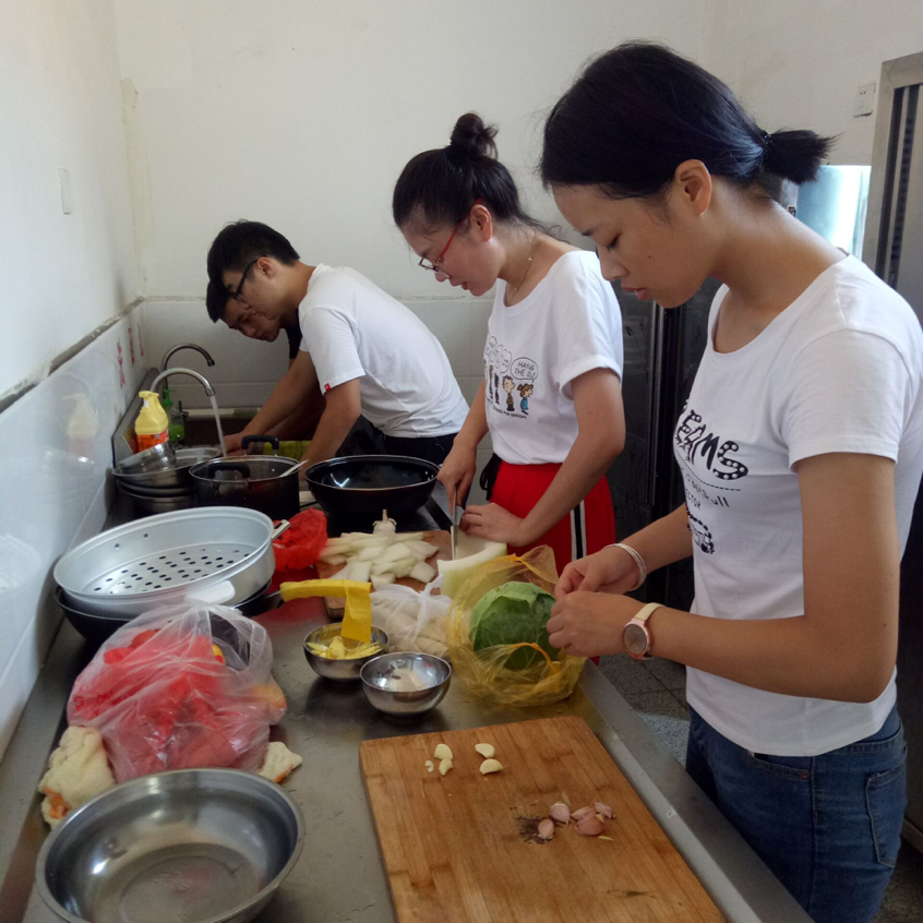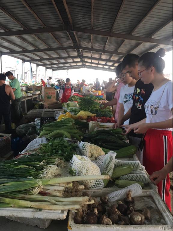 自己动手,丰衣足食。小分队继续发扬这一优良作风,周日清晨,在赵倩倩老师带领下,同学们前往集市购买食材。酷暑也抵挡不了小分队成员们各显神通、大展厨艺的决心。