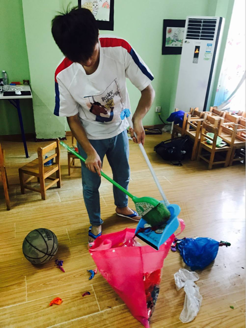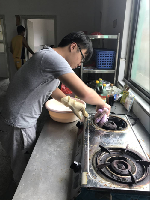 平时忙工作,周末整内务。周六同学们早早起床,由扶贫抗旱队摇身变成清洁卫生队,对宿舍以及厨房卫生进行全面打扫和物品归置。经过了一上午的努力,我们所居住的环境焕然一新。