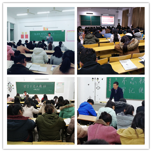 为了让同学们更好地学习、理解、贯彻十九大精神,各个班级紧紧围绕“不忘初心,牢记使命,高举中国特色社会主义伟大旗帜,决胜全面建成小康社会,夺取新时代中国特色社会主义伟大胜利,为实现中华民族伟大复兴的中国梦不懈奋斗”这一十九大主题,通过观看视频、学习报告、交流讨论等多种形式,让同学们更加深入地学习、领会十九大精神。