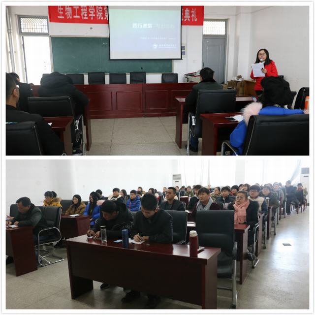 为了帮助同学们树立诚信考试、文明做人的理念,以积极向上的状态迎接即将到来的期末考试。元月10日下午,生物工程学院在生化楼305会议室举行“践行诚信 考出信心”学风建设主题班会观摩活动。学院相关领导、辅导员及17医检二班全体同学参加了本次活动。