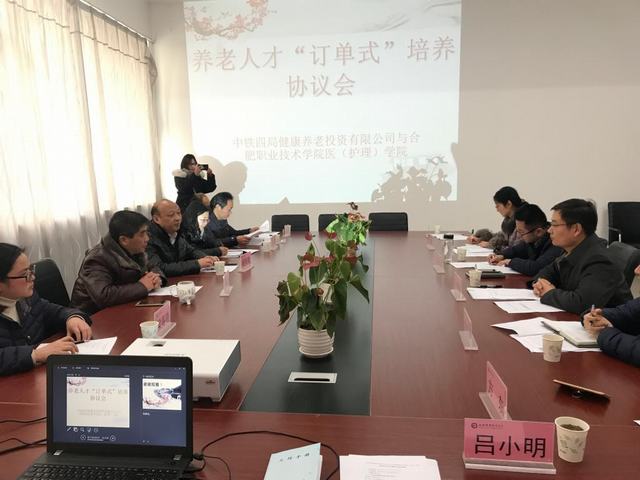 1月18日下午,中铁四局健康养老投资有限公司副总经理孙君毅、人力资源部部长程子伟、运营管理部部长赵岳峰、运营管理部副部长方梅等一行6人来申博进行校企合作洽谈。洽谈会在医学北楼会议室举行,副校长周晓隆及医学(护理)学院相关负责人出席会议。会议由周晓隆副校长主持。