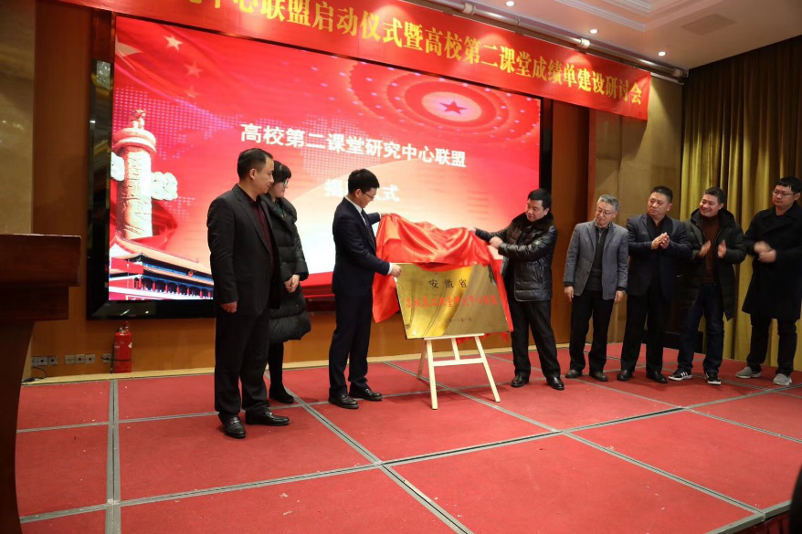 胡其云副书记作为高校领导代表致词,他表示,安徽省高校率先发起“高校第二课堂研究中心联盟”,将本着“共商、共建、共享”的理念,更好的落实第二课堂成绩单政策,并对高校的第二课堂实践育人在全国起到引领作用。大会现场,胡书记与其他参会领导共同为“高校第二课堂研究中心联盟”成立揭牌,并祝福高校第二课堂建设研讨会取得圆满成功。